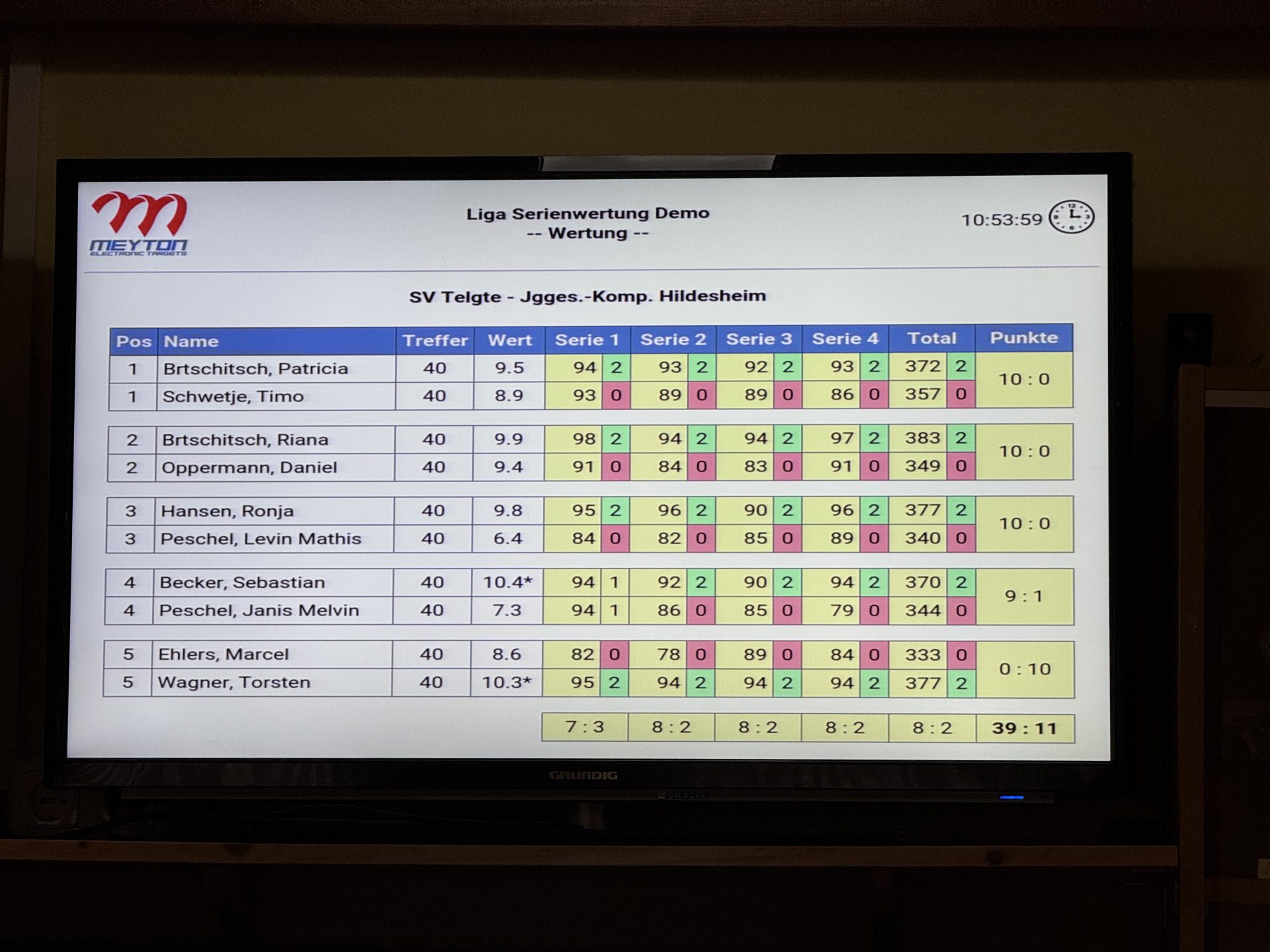 Besonders wurde es in der Begegnung gegen Giesen: Ein defekter Stand führte dazu, dass der Einzelpunkt im Stechen ausgeschossen werden musste – und ging schließlich an Giesen.